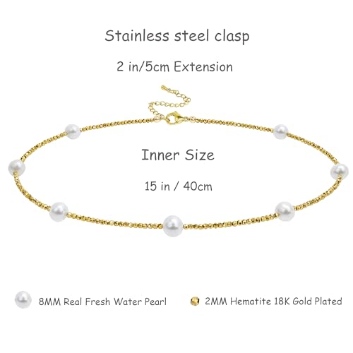 GEMTAL Genuin Real Freshwater Pearl Necklace,White Pearl Choker Necklaces for Women,Hematite Gold/Silver Beaded Simple Pearl Necklace,Dainty Adjustable Pearl Jewelry Mother’s Valentine Day Gifts (03 White/Gold)
