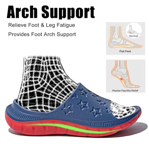 Specification: GLOBALWIN Sports Recovery Slides for Women Ava Sports Sandals With Comfortable Arch Support Indoor Outdoor Cloud Slippers Reduce Stress on Feet Lightweight Blue Red Size 7M