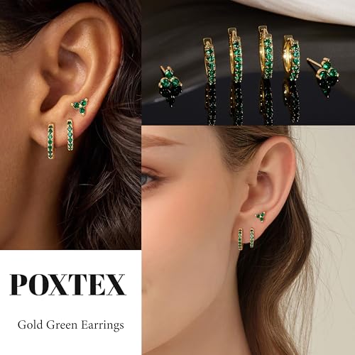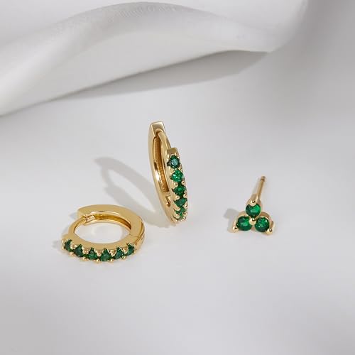 - Gold green earrings set perfect for completing any look with effortless elegance. Whether it’s the classic small 8mm huggie hoop, 10mm huggie hoop or the clover stud earrings, each piece adds a touch of sparkle