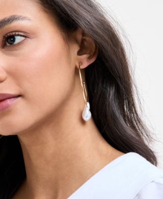 Dripping with sophistication, these I.N.C. International Concepts® C-hoop earrings display a baroque imitation pearl charm.