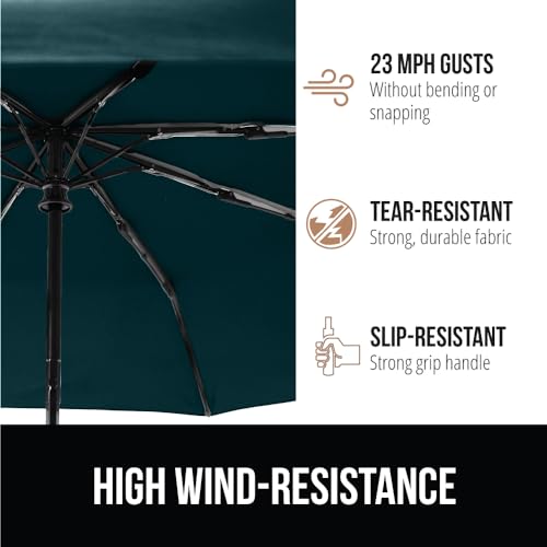 Specification: GORILLA GRIP Strong Windproof Stick Compact Umbrella for Rain, One-Click Automatic Open and Close, Durable Quick Dry Waterproof Material, Lightweight, Portable, Travel Size Fits Backpack, Hunter Green