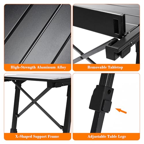 - 【Ultralight & Durable Aluminum Material】The folding IGT camping table is crafted from lightweight, high-strength aluminum alloy, ensuring both durability and portability. The tabletop is scratch-resistant, waterproof, stain-proof, and easy to clean, making it capable of withstanding the toughest outdoor conditions. The frame features a stable X-shaped structure for enhanced support. Despite weighing only 7.6 lbs, this portable camping table can support up to 220 lbs.