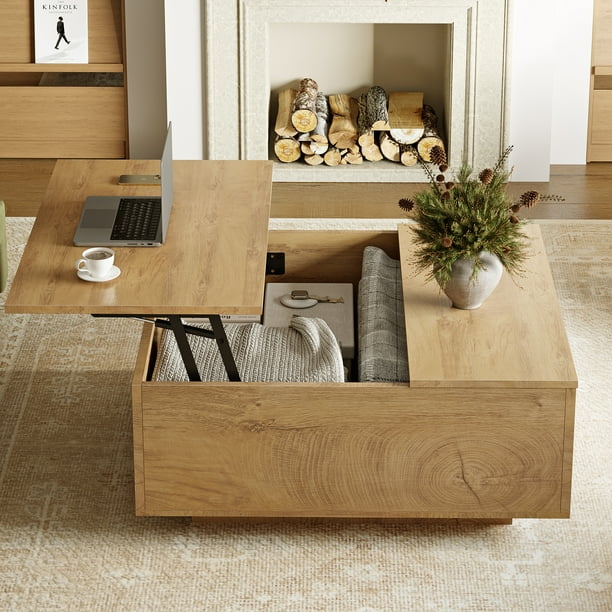 GUNAITO Lift Top Coffee Table with Storage, Square coffee table and modern Farmhouse Center Table for Living Room, Natural wood color