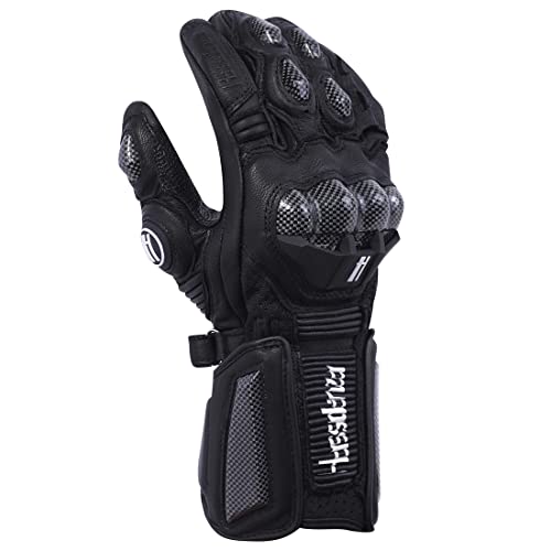 Specification: Harssidanzar Leather Motorbike Gloves for Men and Women,Powersports Carbon Fiber Knuckle Protection Motorcycles Gloves KM045,Black,Size XL