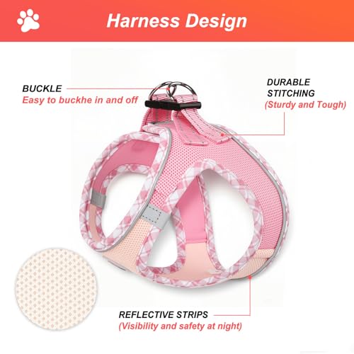 Hipubby Dog Harness Small Sized and Leash Set, No Pull Soft Mesh Puppy Vest, Reflective Breathable Lightweight Pet Harness, Harness for Small Medium Dogs and Cats – Light Pink XXS