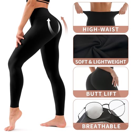 Hmuuo 3 Pack Leggings for Women High Waisted Tummy Control No See-Through Yoga Pants Workout Running Leggings
