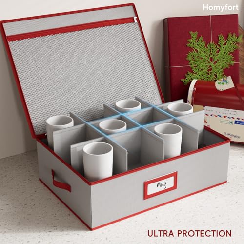 Specification: homyfort Coffee Mug Storage Box, China Cup Storage Organizer Containers Hard Shell Stackable with Dividers Holds 12 Coffee Mugs and Tea Cups