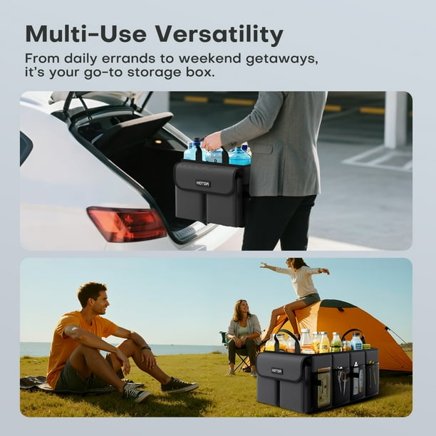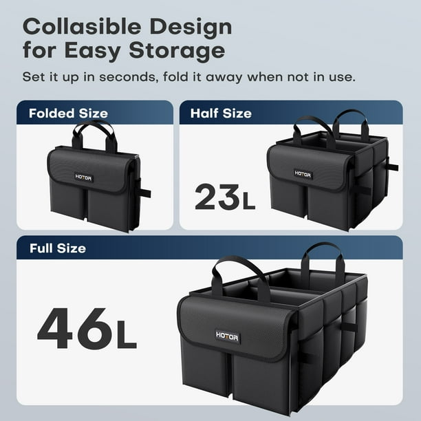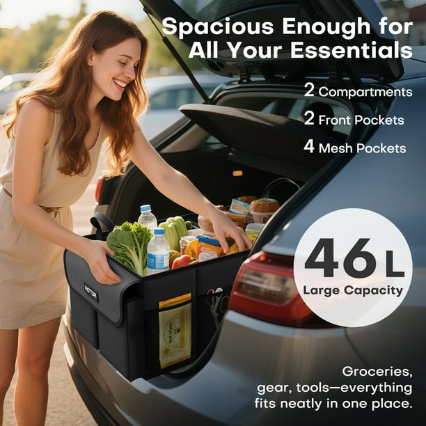 Specification: HOTOR Trunk Organizer for Car and SUV – Large-Capacity Car Organizer with Multiple Compartments, Foldable Car Organization for Car Accessories, Tools, Sundries, Black