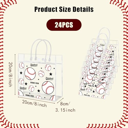 HYMENEX 24 Pack Baseball Clear PVC Gift Bags, Baseball Snack Bags with Handles for Goodie Treat Candy Party Holiday Sports Decoration