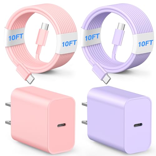 Specification: i Phone Fast Charger, 10FT 20W USB C Charger, 2Pack Type C Charging Fast, Appple Charging Cord, Compatible with i Phone 17/17 Pro/16/16 Pro/16 Pro Max/15/15 Plus/15 Pro/15 Pro Max-Pink and Purple