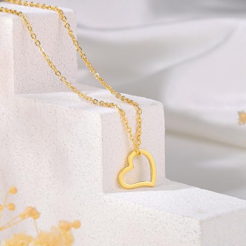 Ieftop Dainty Gold Necklace for Women – 14K Gold Plated Tiny Heart Cute Heart Pendant Necklaces for Women Trendy Jewelry