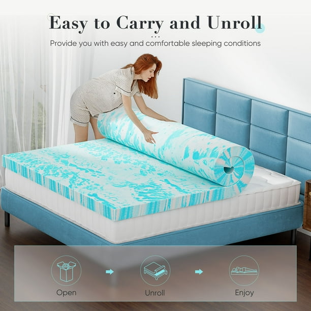 - [Cooling and Breathable Design] — Featuring a cooling gel layer, our mattress topper is designed for hot sleepers who value a fresh and comfortable sleeping environment. The breathable construction helps regulate body temperature, keeping you cool throughout the night.