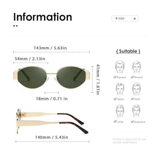 Specification: kimorn Retro Oval Sunglasses for Women Men Trendy Sun Glasses Classic Shades UV400 Protection K1653 (Gold/Green)