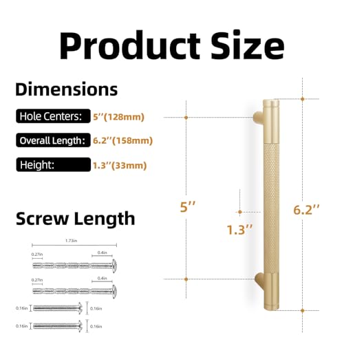 - 【PACKAGE INCLUDES】10 pacs 5 inches brushed gold cabinet pulls, each individually wrapped to prevent scratches, also comes with two lengths (1 inch and 1.73 inch) screws removable