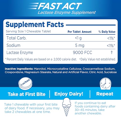 - 60-count single-dose portable packs of Lactaid Fast Act Lactose Intolerance Chewables with natural lactase enzyme come in a Vanilla Twist flavor and help prevent gas, bloating and diarrhea associated with lactose intolerance