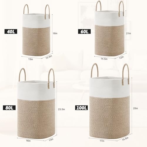 Specification: Laundry Basket,Woven Cotton Rope Laundry Hamper,Versatile Storage for Dirty Clothes,Baby Toys,and Blankets in Bathroom, Nursery,and Living Room (Brown, 60L)