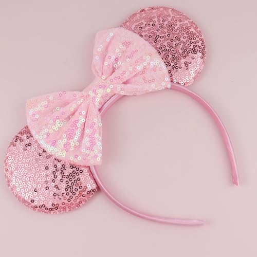 LIHELEI Mouse Ears Headband for Princess, Pink Headbands for Women Halloween Costume, Sequin Bows Headwear Hair Accessories for Women – Pink