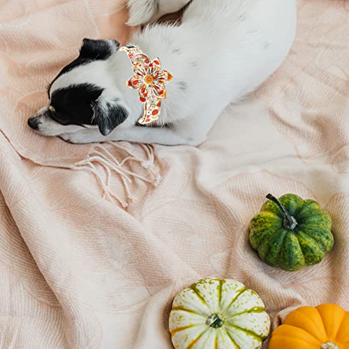 Lionheart glory Premium Dog Collars Flower Dog Collar Heavy Duty Adjustable Fall Dog Collar for Large Dogs Pumpkin Dog Collars Flower Dog Collar with Bow Tie