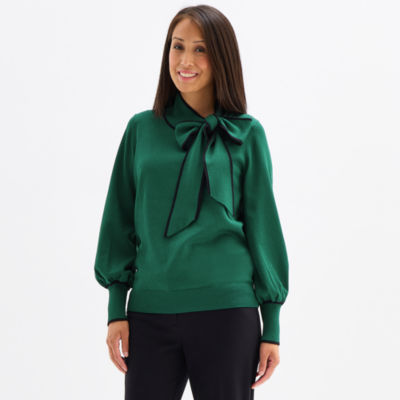 Liz Claiborne Womens Split Tie Neck Long Sleeve Pullover Sweater