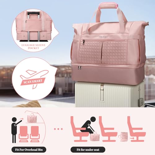 Maelstrom Gym Bag for Women,40L Travel Duffel Bag with Shoes Compartment and Wet Pocket,Waterproof Carry On Weekender Bag,Sport Gym Tote Bags Swimming Yoga, Hospital Holdalls-Pink