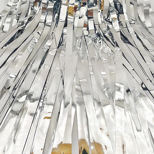 Metallic Tinsel Foil Fringe Backdrop 3.28×6.56ft -Photo Booth Background for Birthday Party Decoration Baby Shower Engagement Wedding Christmas Decoration (Silver,5PCS, 3.28*8.2ft)