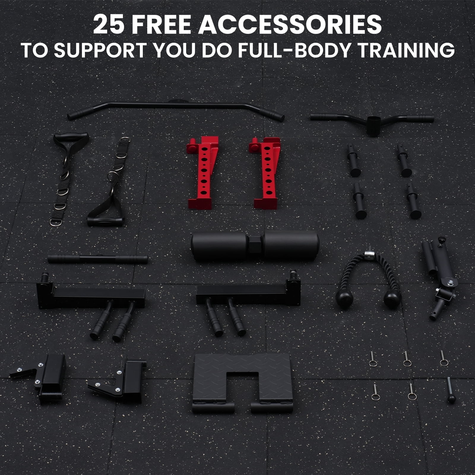 Safety and stability always are our focus points, we are not kidding about them. The upgraded base and 12 connecting pieces with 6mm thickness enhance the stability and safety of our home gym smith cage. Also, the new rubber base could avoid scratches on the floor. Feel safe using our equipment because this smith machine home gym is designed by our professional technical team, and you are going to get the most exciting experience with it.