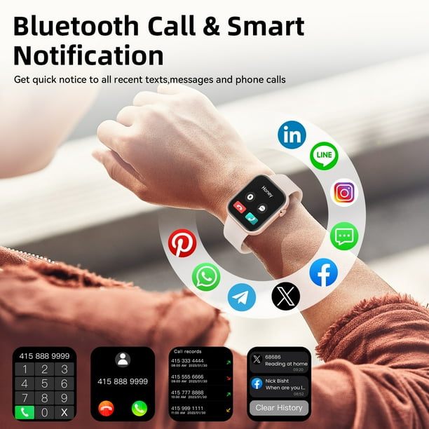 Specification: Mingdaln 1.85-inch Men Womens Smartwatch,with Bluetooth Answer/Make Calls/120+Sports Modes/10 Days Standby, rugged IP68 Waterproof Fitness Tracker Fits for Android Iphone…