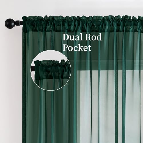 MIULEE 2 Panels Christmas Solid Color Sheer Window Curtains Elegant Window Voile Panels/Drapes/Treatment for Bedroom Living Room (54X84 Inches Hunter Green)