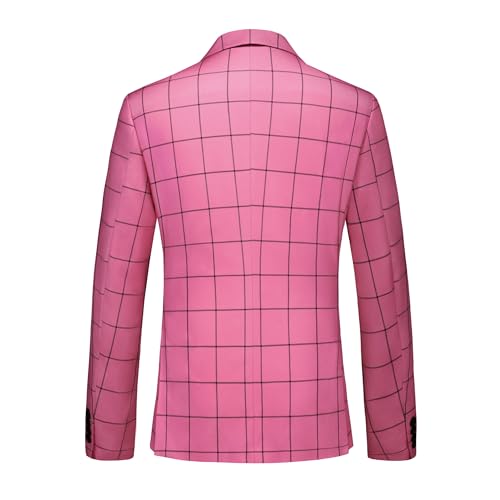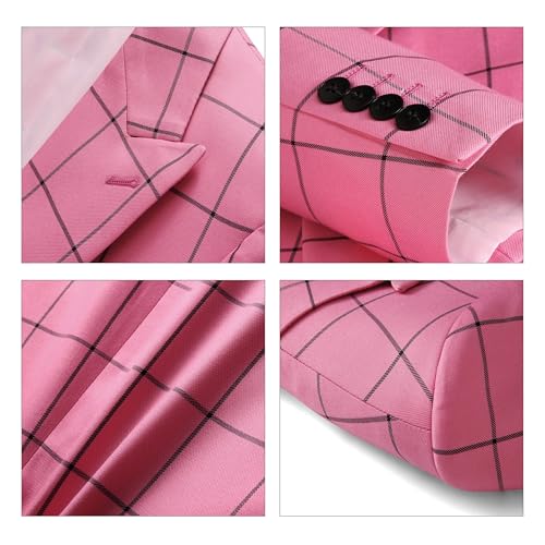 MOGU Men’s Slim Fit Plaid Suit Set Checkered Sport Coat Blazer, Vest and Pants – Each Sold Separately for Wedding, Prom & Party Hot Pink Double Breasted Suit Jacket,32 Regular