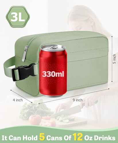 Specification: Neverwhy Small Insulated Snack Bag Lunch Bag for Kids Lunch Box for Women/Men, Collapsible [3L/5-Can] Reusable Lunch Bag Cooler Bag for Bottle with Handle Buckle for Work School Travel (Green)