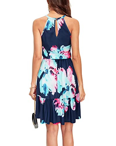 Newshows Women’s 2025 Summer Dress Halter Casual Beach Vacation Outfits Hawaiian Dresses Ruffle Belted Sundress with Pockets(Floral-3, S)