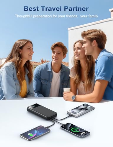• 22.5W Super Fast Charging:The Cell phone portable charger boasts PD 22.5W output and QC4.0 quick charging technology, allowing it to charge your iPhone to 55% in just 30 minutes—3 times faster than a standard battery bank. USB-C two-way charging (IN&OUT) and LED digital display eliminate power anxiety, ensuring the best experience during your vacation