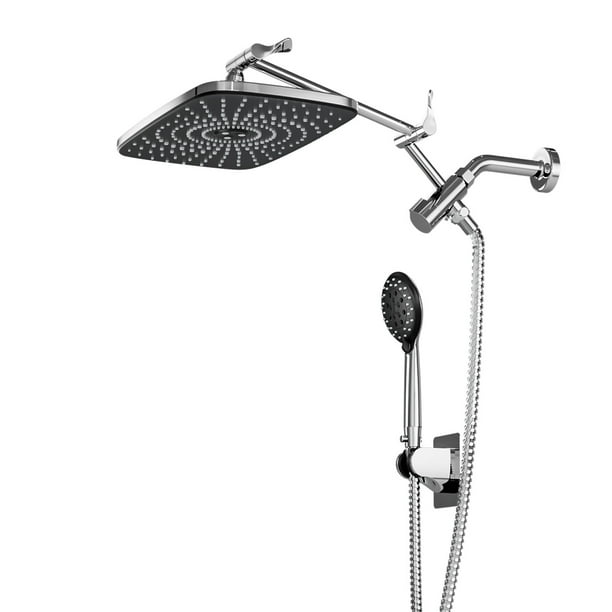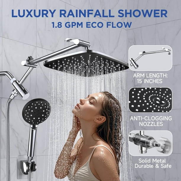 Ophanie 5-Setting High Pressure Shower Heads for Bathroom, 11.8 inch Rain Shower Head with Handheld Combo, Dual Rainfall Shower Head with Hose. Upgraded Stainless Steels 15 INCH Extension Arm with Built in Gasket: Solves the compatibility problem of NPT threaded pipes. 12 inch Rainfall Shower Panel: Extra thick & large panel can cover your whole body with high pressure water. 180° Adjustable Extension Arm: The height can be adjusted easily to meet the needs of every family member. Anti- Clogging Nozzles: Does not clog overtime! You can enjoy high water pressure constantly with our anti-clog design. 3/6 Spray Modes: Rainfall spray,handheld spray ,rain & handheld spray. And handheld shower has 6 modes. 70″ Extra Long Anti-Tangle Hose: 10″ longer than most competitors.Extra long shower hose not only helps you with reach, but also ensures less wear on the hose. Easy Installation: Following our clear install manual and video, it only takes 5 steps for the installaton.