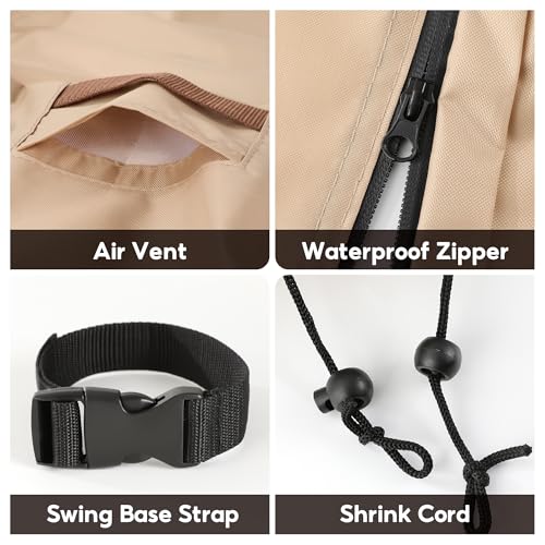 - [BREATHABLE DESIGN] Both sides of the patio swing cover are added with breathable holes to ensure air circulation in humid air and reduce the internal humidity, which can keep the swing dry and free of unpleasant odor even on rainy days.