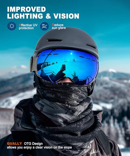 Specification: QALLY Anti Fog Ski Goggles for Men Women Snow Goggles with UV Protection Snowboard Goggles, White Frame Silver Lens/Black Frame Ice Blue Lens