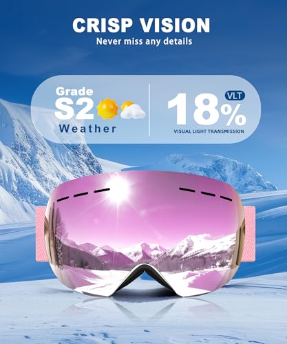 Specification: QALLY Anti Fog Ski Goggles for Men Women Snow Goggles with UV Protection Snowboard Goggles, White Frame Silver Lens/White Frame Pink Lens