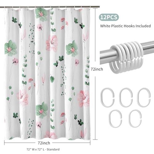Specification: QiyI Watercolor Floral Shower Curtain, 3D Embossed Butterflies Sage Green Botanical Bathroom Curtain, Pink Flowers Cloth Bath Curtain, Waterproof Fabric Textured Shower Curtain Set with Hooks, 72×72