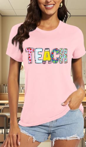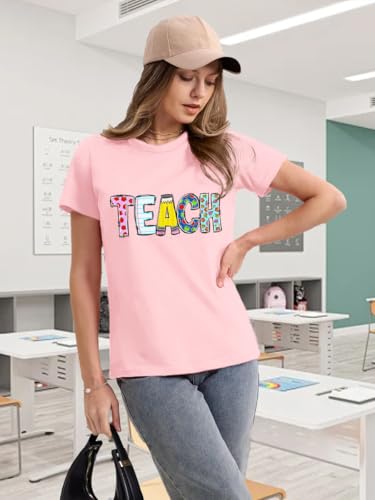 Qskall Teacher Shirts for Women Teach Teaching Tshirt Teacher Life Tee Tops Pink