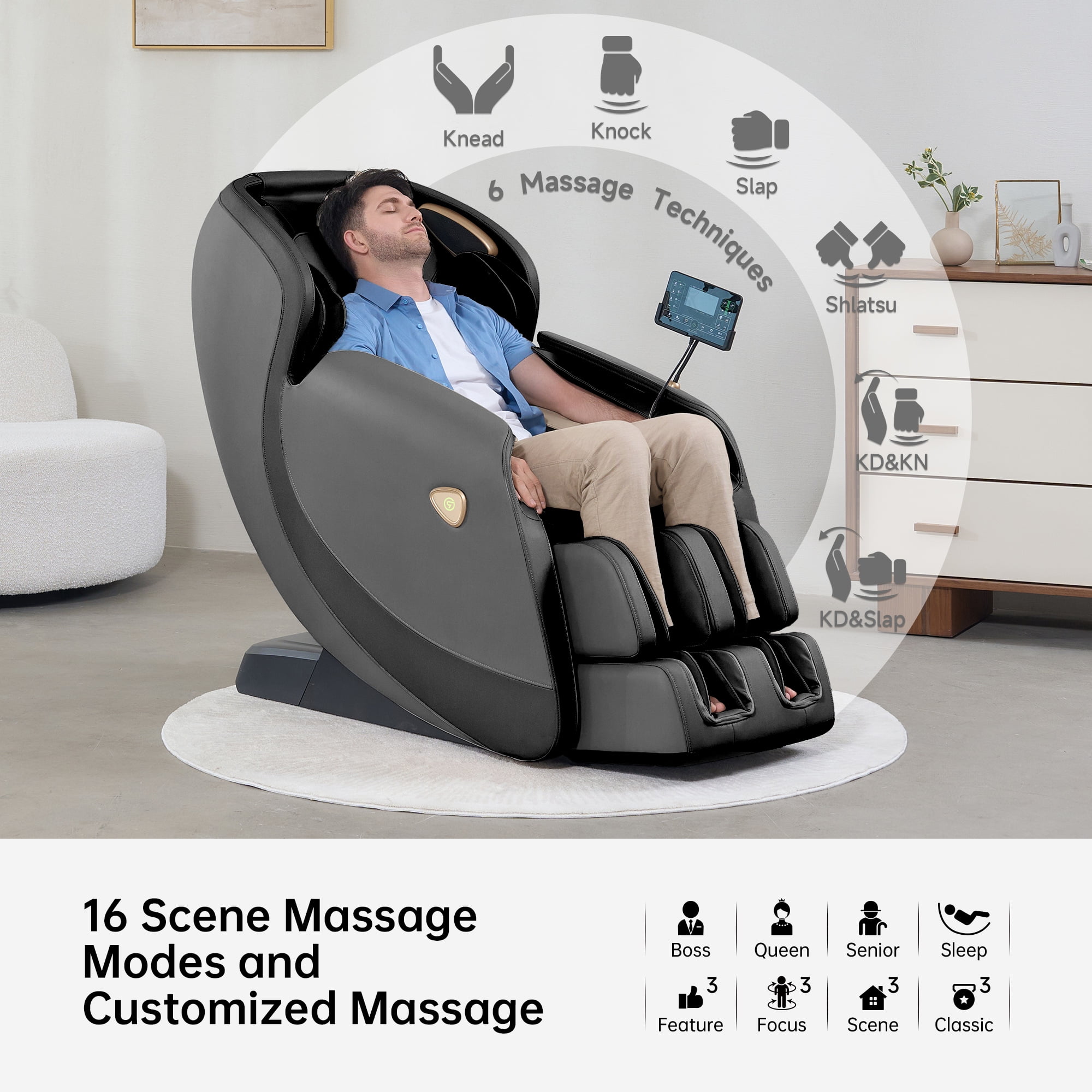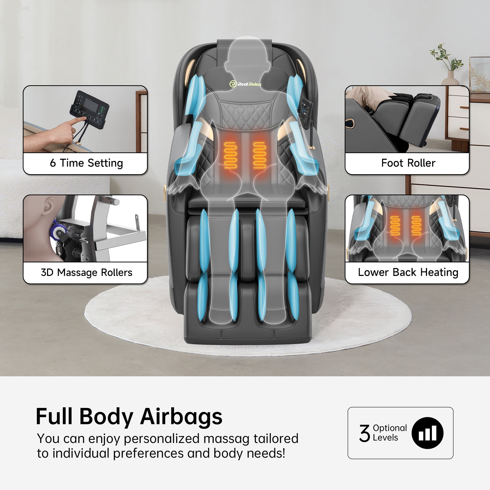 Auto Bodyscan: Automatically scan your body after turning on, according to the height, body shape, adjust the massage points.