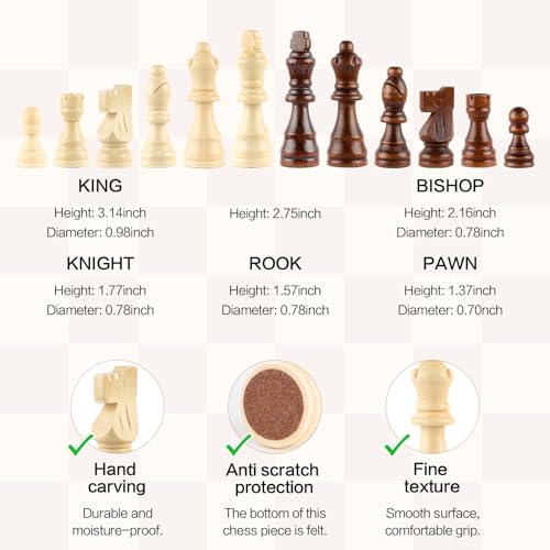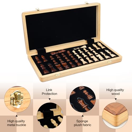 Specification: RERIVER 15 Inch Magnetic Wooden Chess Game Set Classic Folding Board Games with Felted Game Board Interior for Storage 2 Extra Queens Pieces Storage Slots