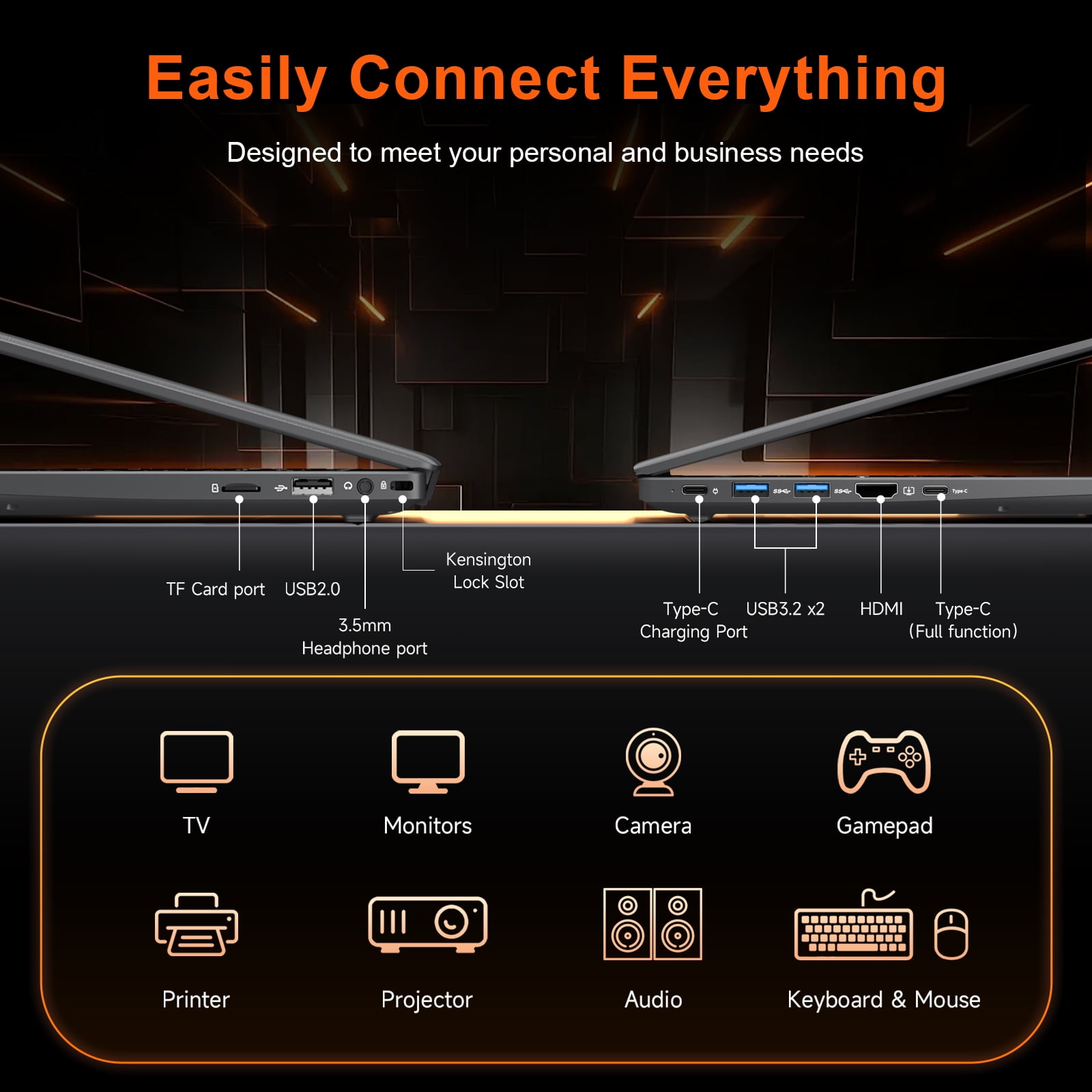 RNRUO Business Laptop, featuring an AMD 3020e processor which up to 2.6GHz Turbo Boost, dual-channel 8GB RAM DDR4 and a 256GB SSD (Exp. Up to 16GB + 2TB)for lightning-fast responsiveness and reliable multitasking. Pre-installed with Windows 11, this laptop computer blends high efficiency with low power consumption, ensuring seamless productivity for business, study, or casual gaming.