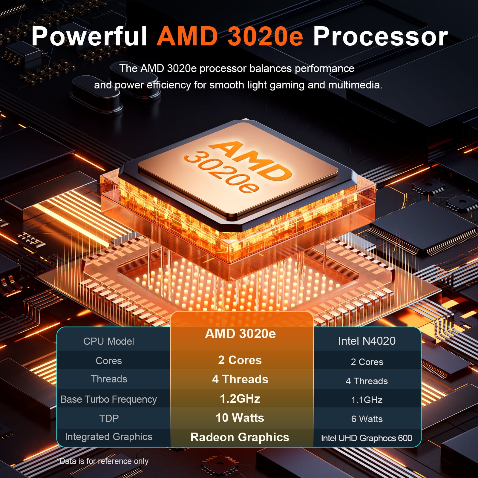 1) AMD 3020e processor, Up to 3.4GHz CPU, 2 cores, 4 threads, 4MB Cache