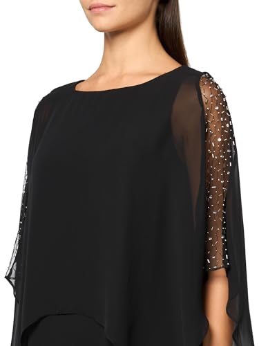 Specification: S.L. Fashions Women’s Short Sheath Capelet Gown with Asymmetric Overlay, Mother of The Bride Dress (Petite and Regular Sizes), Black Beaded Illusion, 8