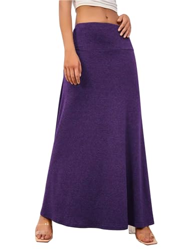 SEAFORM Women’s Casual Mid Long Skirts Stretchy Ultra-Soft Flowy Maxi Formal Skirts High Waist Lounge Skirts for Women Purple