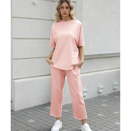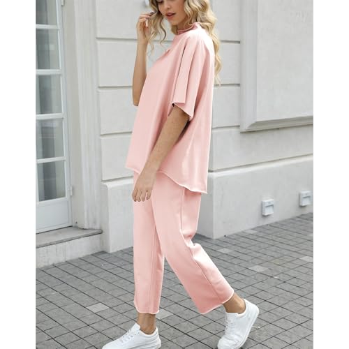 Specification: SeeLuNa Women’s Two Piece Outfits 3/4 Batwing Sleeve Capelet Crew Neck Pullover Top Wide Leg Pants Lounge Set(Pink,XL)