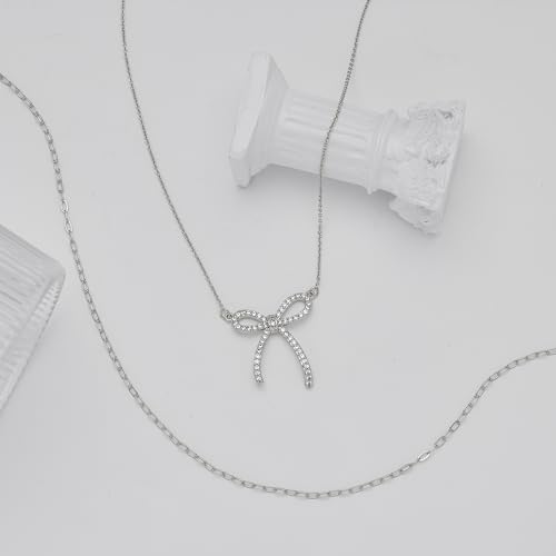 Specification: Silver Layered Necklaces for Women Chunky Sterling Silver Plated Stack Diamond Bow Statement Pendant Necklace Cute Trendy Dainty Small Tiny Bow Simple Choker Chain Jewelry Set for Women Gift