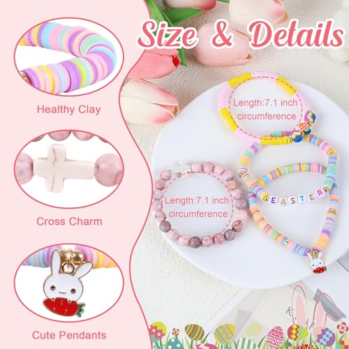 SKVIZLAC Easter Bracelets Set Handmade Natural Stone Bunny Cross Bracelet for Easter Beaded Stretch Bracelets Teen Gifts Easter Jewelry for Women (Easter Bracelet-B)