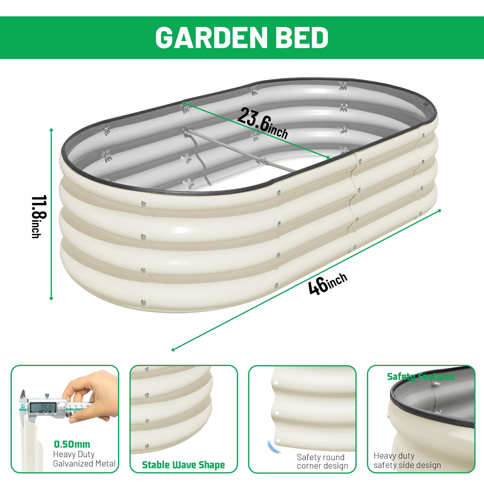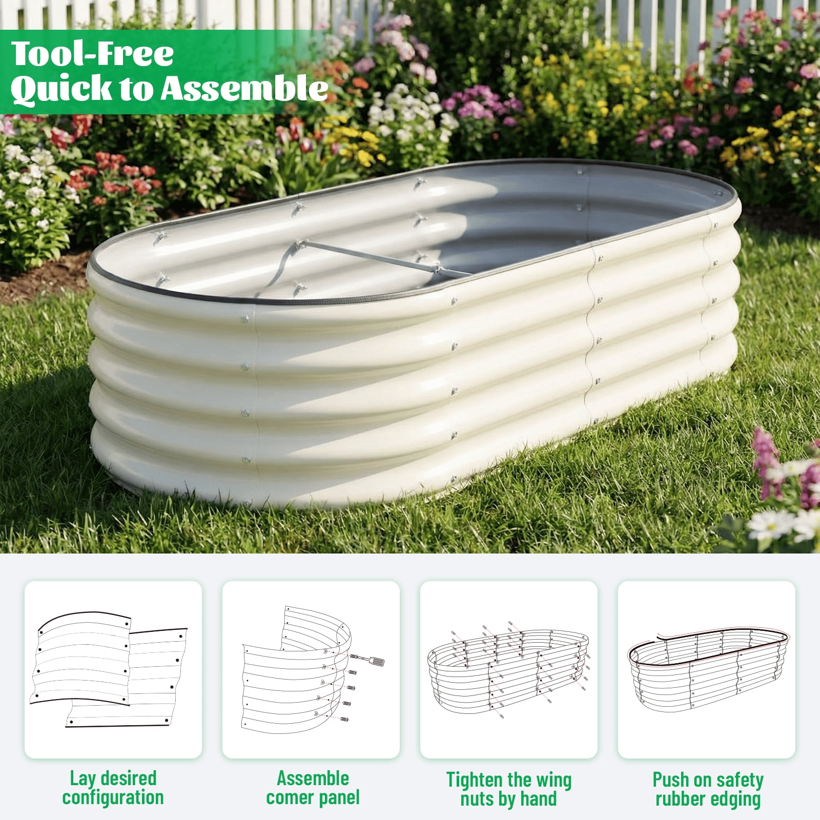 SnugNiture 4x2x1 ft Galvanized Garden Bed, 2 Pcs White Oval Planters for Vegetables and Outdoor Plants
