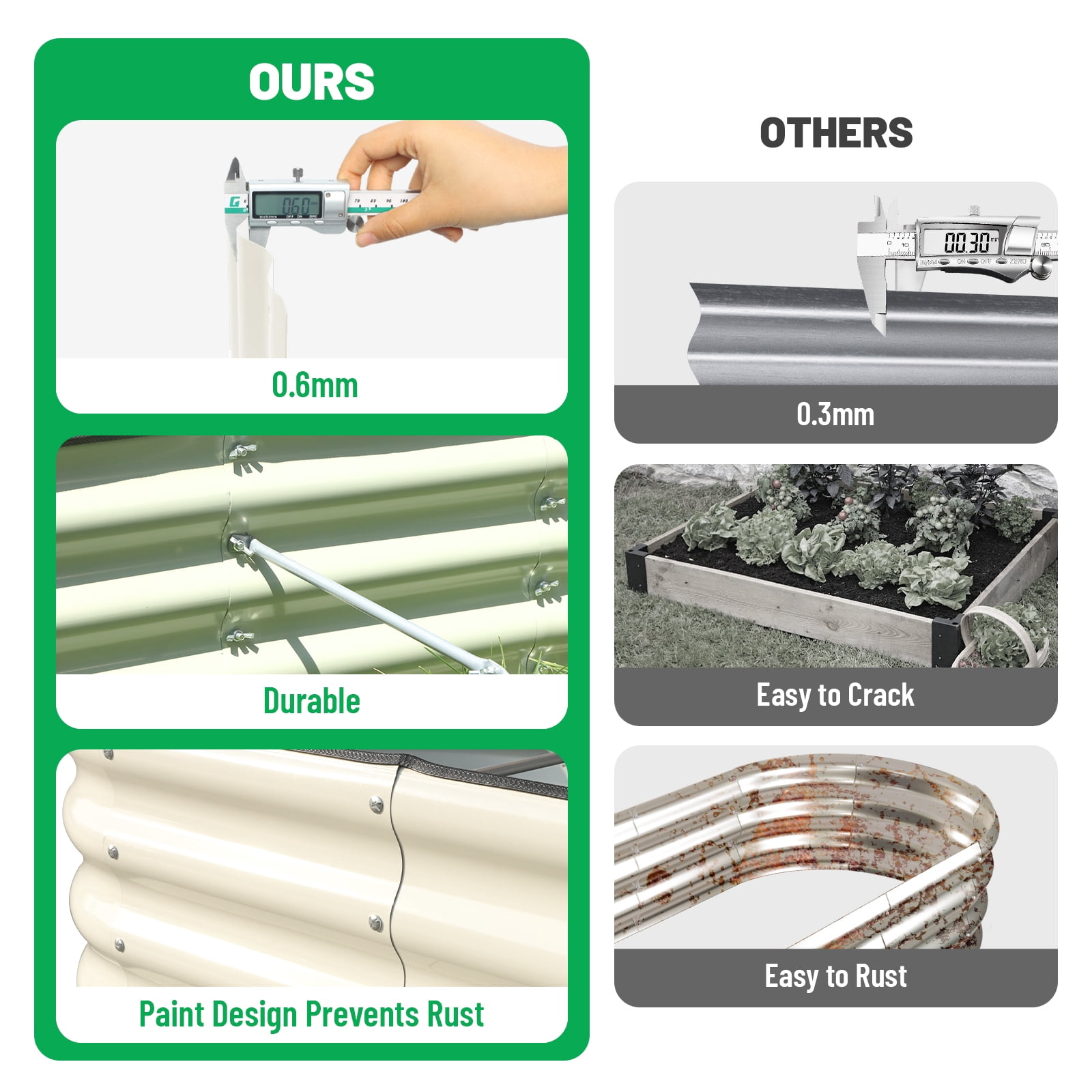 SnugNiture offers stylish, eco-friendly, and durable garden beds. Our design ensures easy cultivation and lasting durability. Made from premium galvanized materials, with safety rubber edging, a central support rod for stability, and an open base to promote healthy root growth. Perfect for growing vegetables, flowers, or herbs, SnugNiture raised garden beds are ideal for long-term outdoor use.We’re committed to your satisfaction—if you have any questions, feel free to contact us anytime!