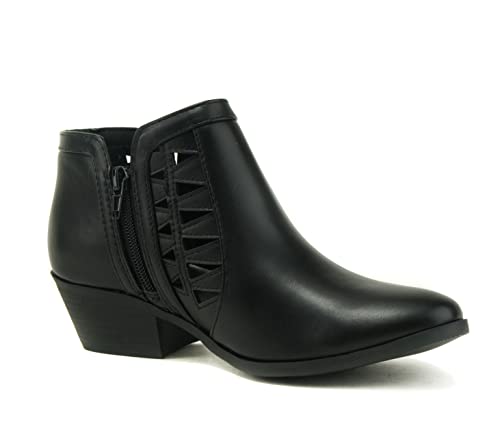 Specification: Soda CHANCE Womens Perforated Cut Out Stacked Block Heel Ankle Booties (Black PU, us_footwear_size_system, adult, women, numeric, medium, numeric_9_point_5)